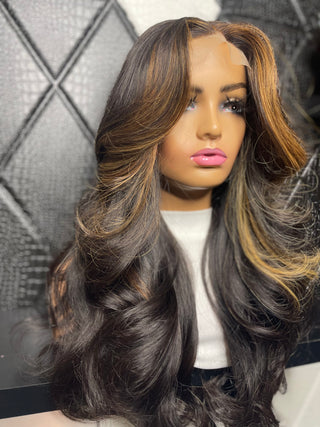 22” 5x5 Closure Pre Made Wig, Styled with Highlights. (Ships Next Day)