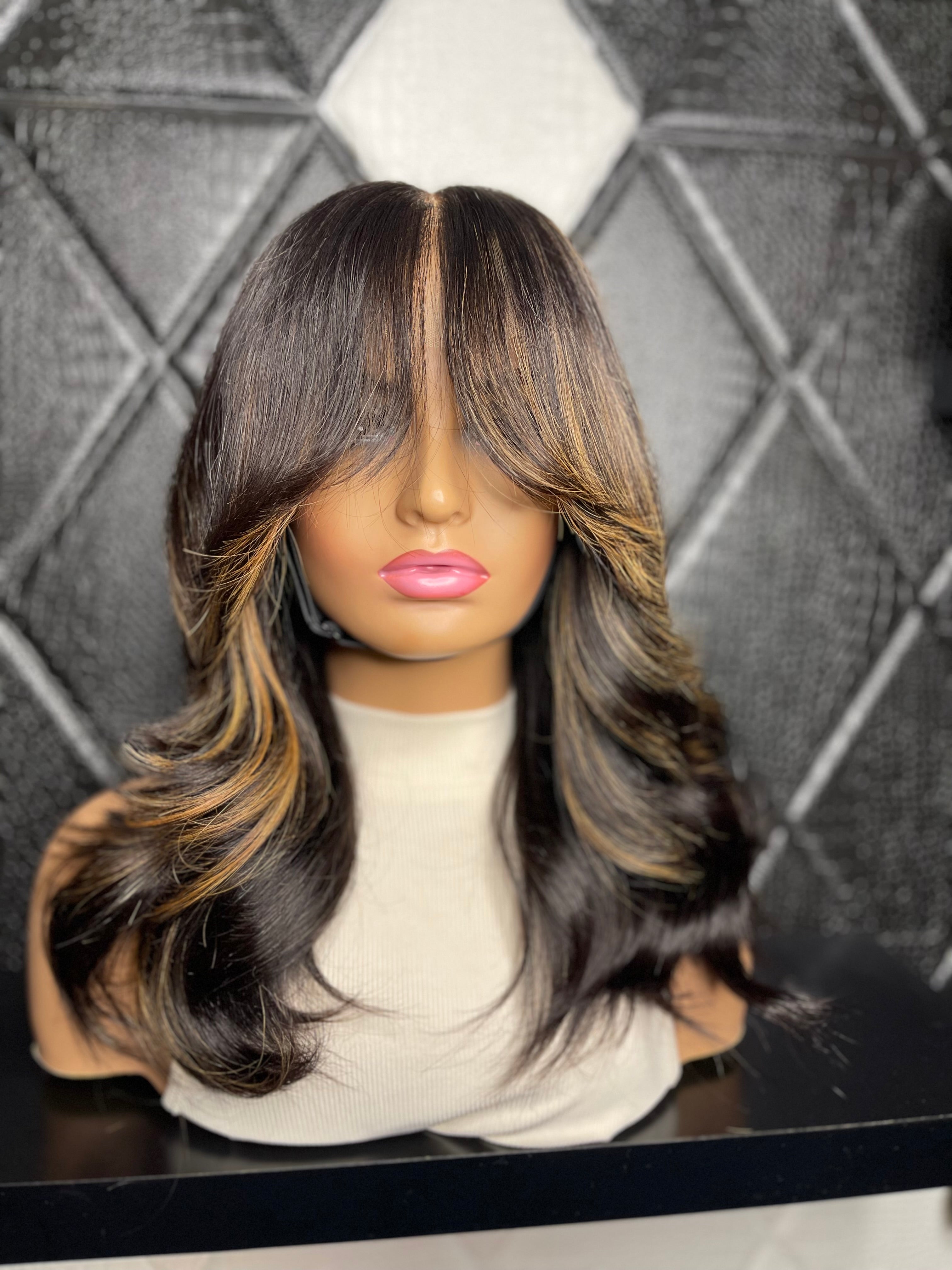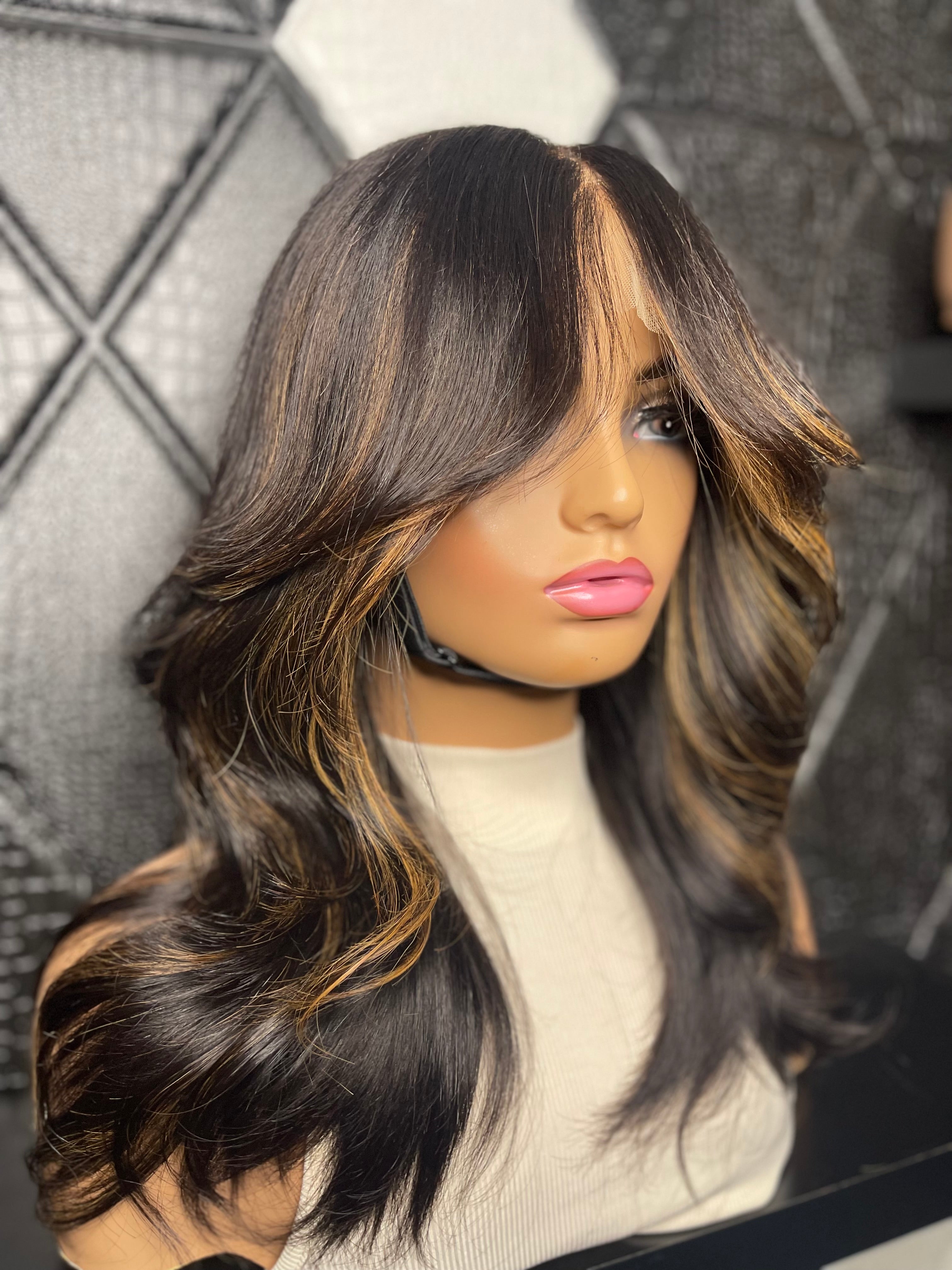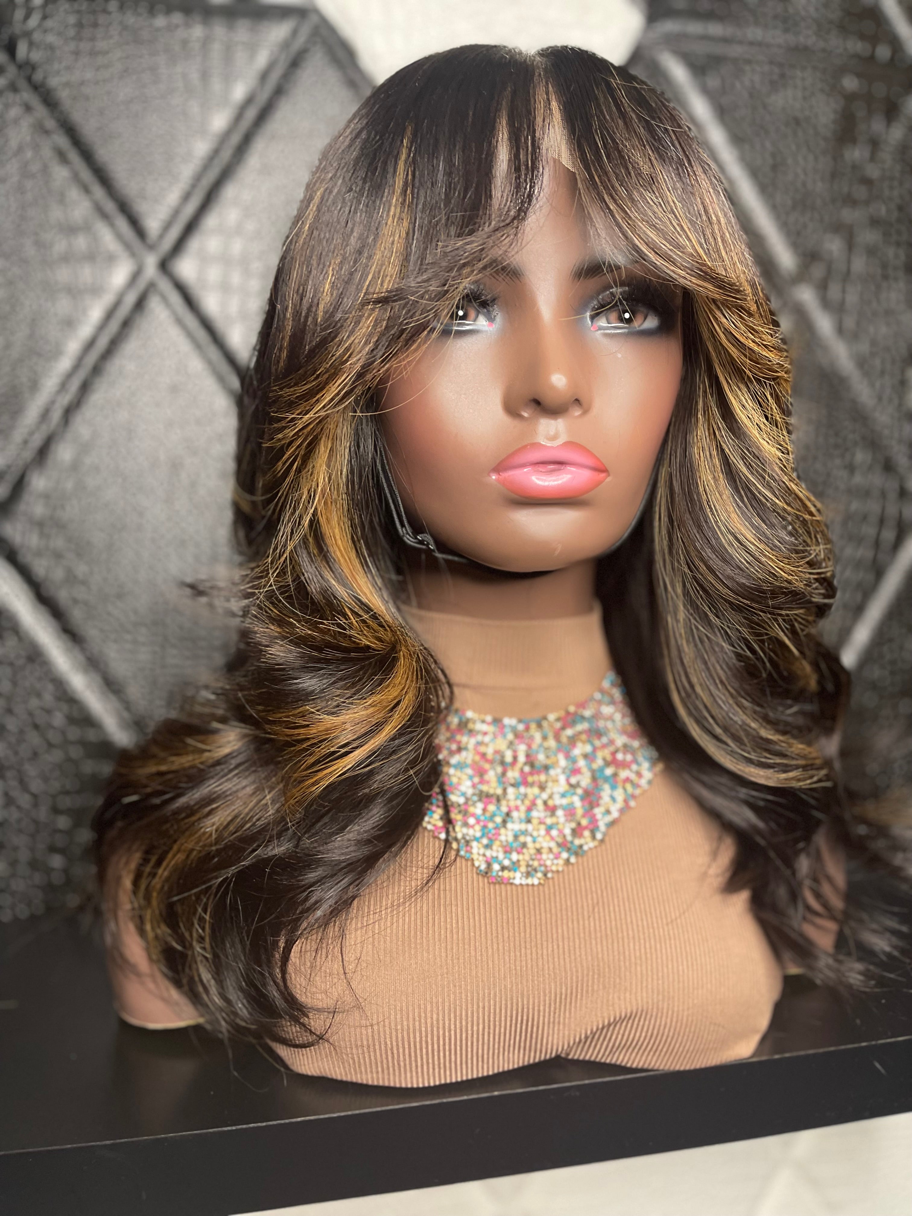 18" 5x5 Premade Closure Wig with Highlights (Medium) Adjustable Band/Straps